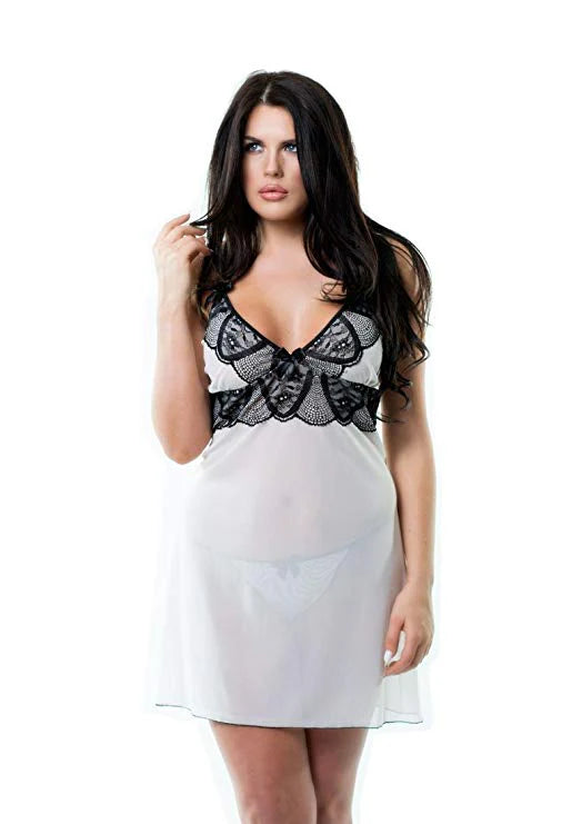 Σετ με νυχτικό και ασορτί στρινγκ σε χρώμα άσπρο-μαύρο